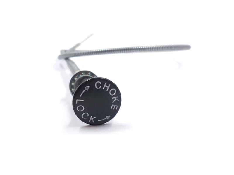 Original-style aftermarket version choke cable, as fitted to the twin carb version Mk1 Classic Mini Cooper and Cooper "S". Black plastic knob (as opposed to the original Bakelite), marked "CHOKE" and "LOCK"; twist-to-lock function. Sheath is 30" long, with 33" inner cable. If your cable no longer locks on or the cable end is hopelessly frayed replace it when you can!