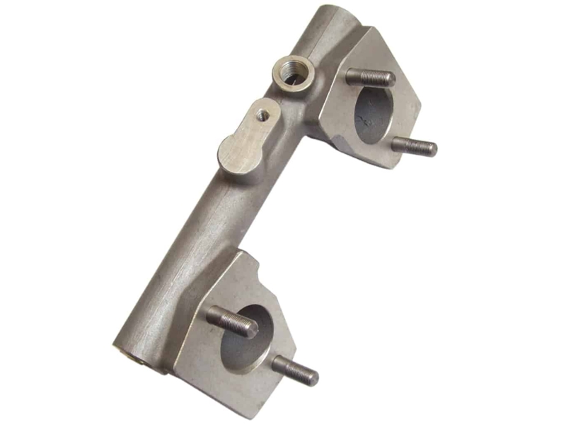 Cast aluminum intake manifold for twin HS2 or H4 (not HS4) carbs. This intake manifold has been carefully produced to minimize cross-port flow interference caused by the balance tube and has generous radii in all the right places. Further blending can be done if required for port match, but leave a rough-ground finish to promote fuel atomization. Do NOT polish!
