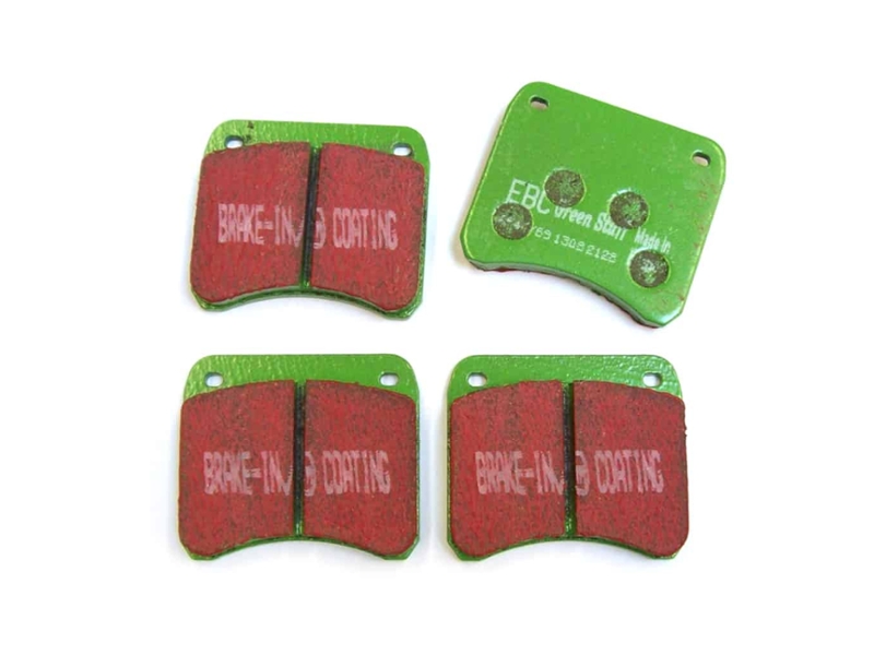 Affordable heavy-duty road performance EBC Kevlar Green Stuff Roadsport material brake pads for 7" 998 Classic Mini Cooper disc brakes; less brake dust and better stopping power! These pads are identifiable by a 59mm pad width and 2 holes in each pad backing plate for retaining pins. NOT for 7.5" Cooper S.